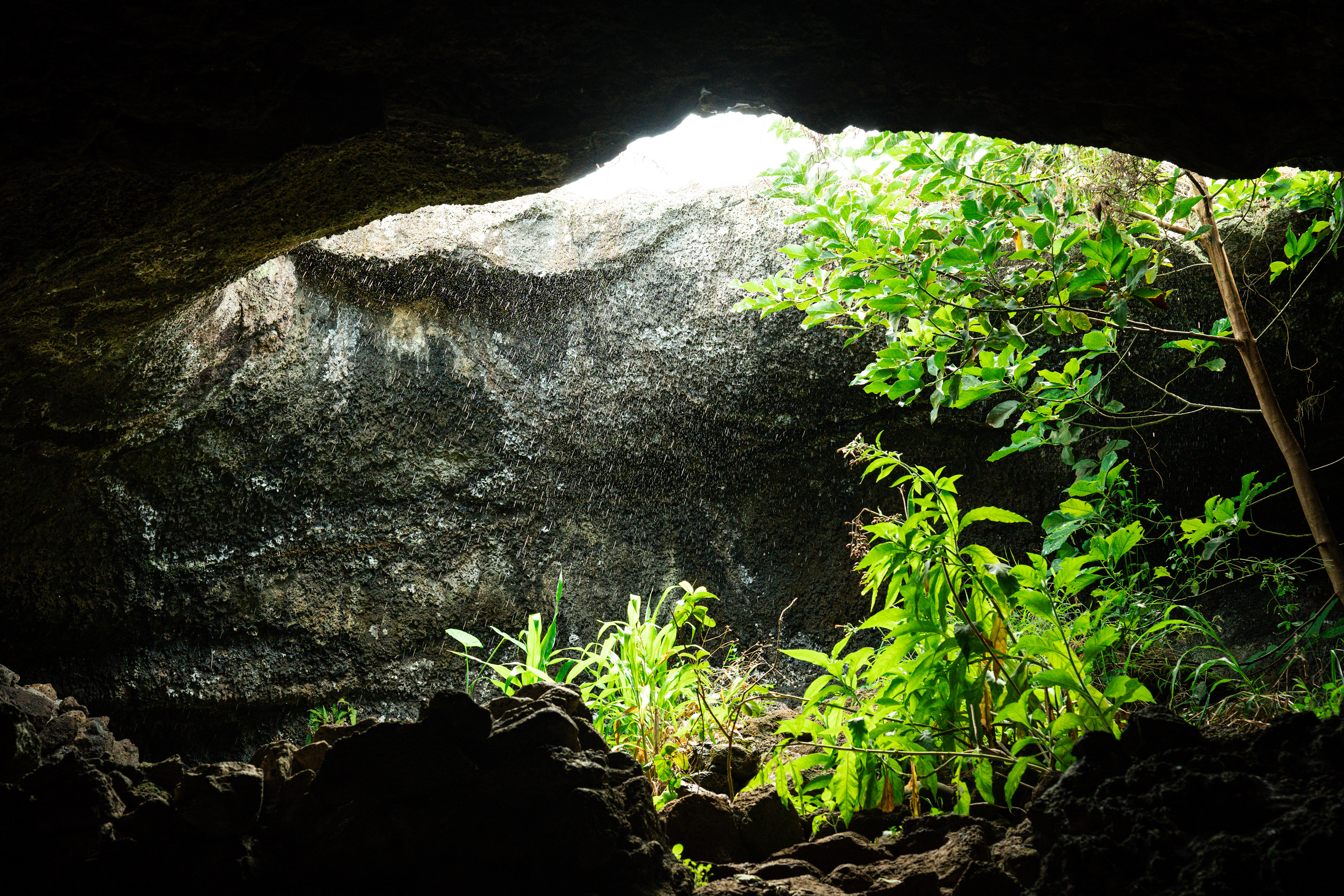 Exploring the mesmerizing depths of Ana Te Pahu cave.